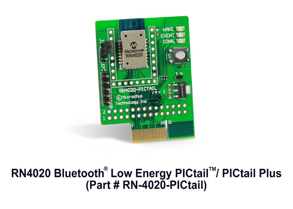 마이크로칩이 함께 출시한 유연한 RN4020 블루투스 저-에너지 PICtail™/PICtail 플러스 도터 보드(부품번호 RN-4020-PICtail)는 현재 구입 가능하다. 보드는 USB 인터페이스를 통해 PC, 마이크로칩의 PICkit™, MPLAB® REAL ICE™ 툴을 위한 온보드 인서킷 시리얼 프로그래밍(In-Circuit Serial Programming™) 인터페이스 상에서의 코드 개발이 가능하다. 또한 이는 마이크로칩의 기존 개발 보드에 익스플로러 16(Explorer 16), PIC 18 익스플로러(PIC18 Explorer) 및 PIC32 I/O 확장 보드(PIC32 I/O Expansion Board) 등 PICtail 인터페이스를 통해 기능 실행을 지원한다. 추가적으로, 온보드 초저전력(eXtreme Low Power 이하; XLP) PIC18 마이크로컨트롤러의 경우 PICtail 보드가 호스트에서부터 USB로 구동되어 독립형 모드로 작동할 수 있으므로 휴대용 기능 시연 및 개념 증명이 가능하다.