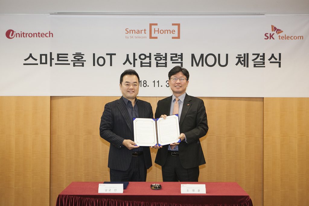 유니트론텍(142210, 대표 남궁선)은 지난 30일 ㈜SK텔레콤과 스마트홈 IoT 사업제휴를 위한 업무협약(MOU)을 체결했다고 밝혔다.