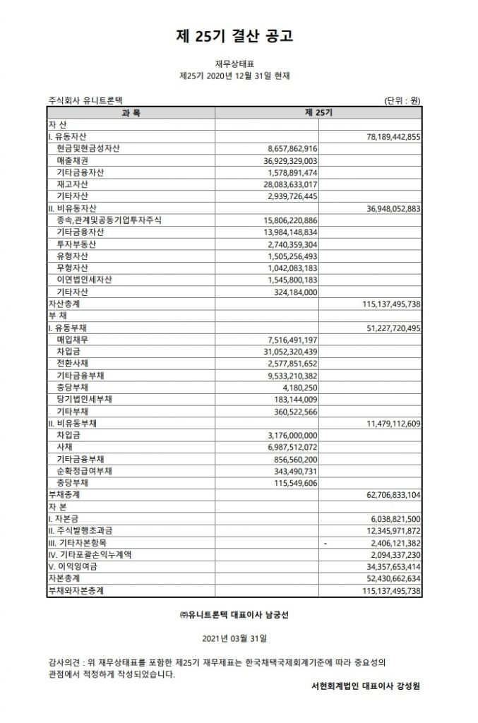 3월 31, 2021 Posted by: Unitrontech Category: 결산공고 댓글 없음 유니트론텍 제25기 결산공고입니다. Share 제품에 대한 궁금증이 있으신가요? 제품문의를 이용해 보세요! 제품 문의하기